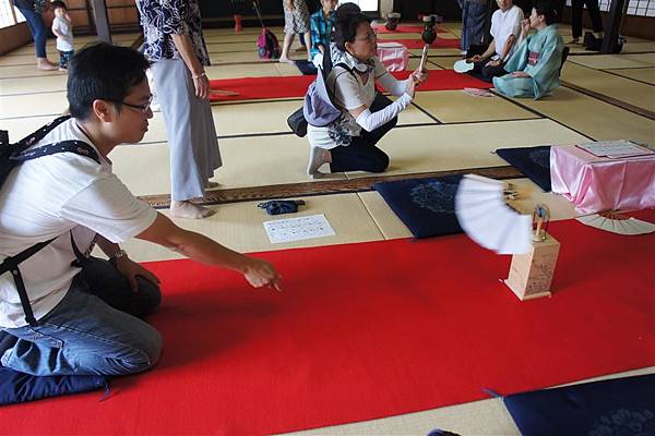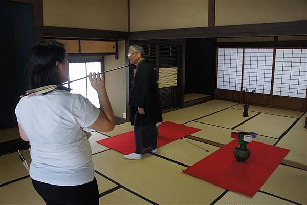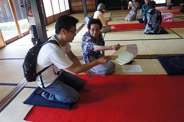 旁邊的婆婆教我們手勢怎麼拿,怎麼丟出去~~