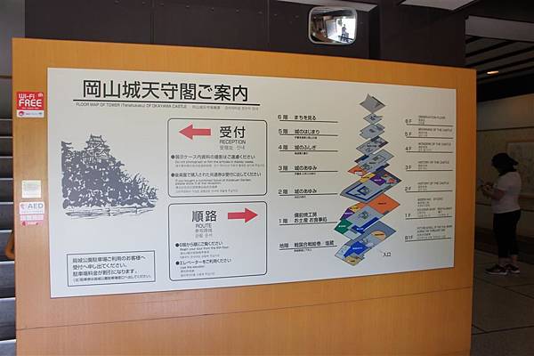 因為岡山城後來有修建過,所以有電梯可以坐,我們搭電梯到最上層再逛下來~