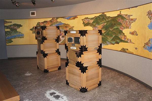 一樓右手邊的這個地方~~這箱子滿有趣的~~按下按鈕 對著牆上的圖會有影像跟地圖重疊,